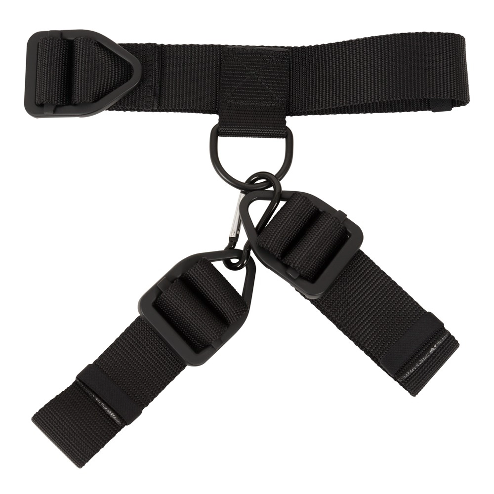 Halsband met polsboeien gemaakt van stevige, onbeperkt verstelbare riemen. De halsband (Omtrek max. 57cm) heeft een D-ring aan de voorkant, de polsboeien zijn te bevestigen met de meegeleverde karabijnhaak.