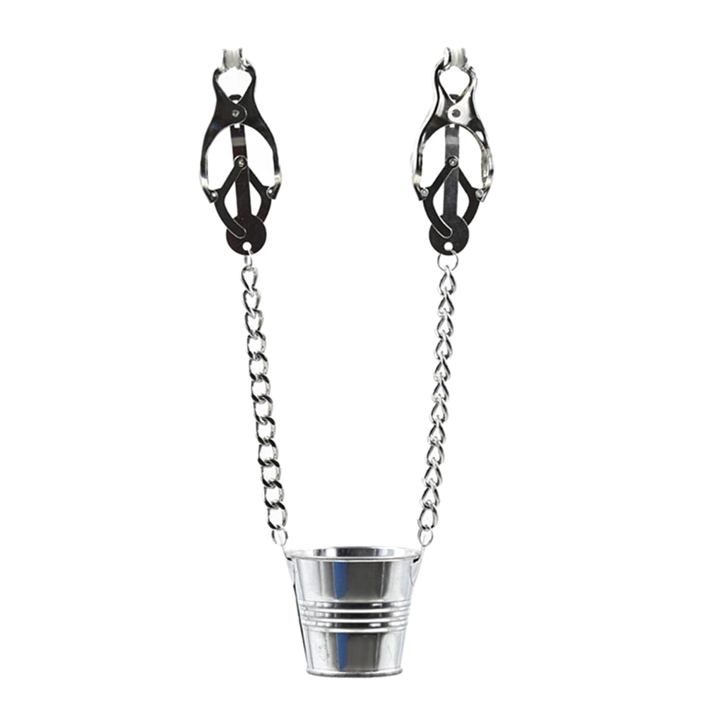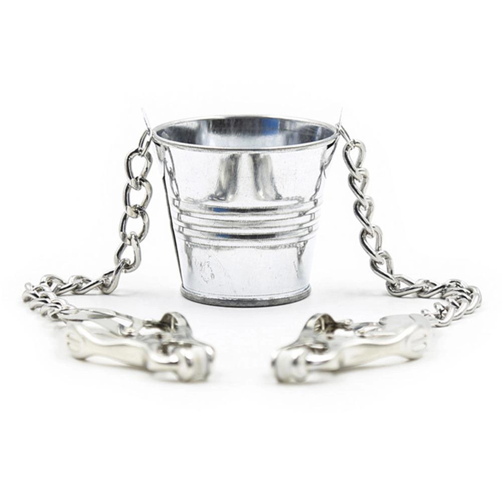 Clover stijl klemmen met een leuke twist: voeg zelf gewichtjes toe aan het bevestigde emmertje en voer jouw nipple play sessie op tot welke intensiteit je ook maar kunt verzinnen! De klemmen hebben zachte, genopte uiteindes en zijn elk met een 13cm lange ketting verbonden aan het kleine emmertje.