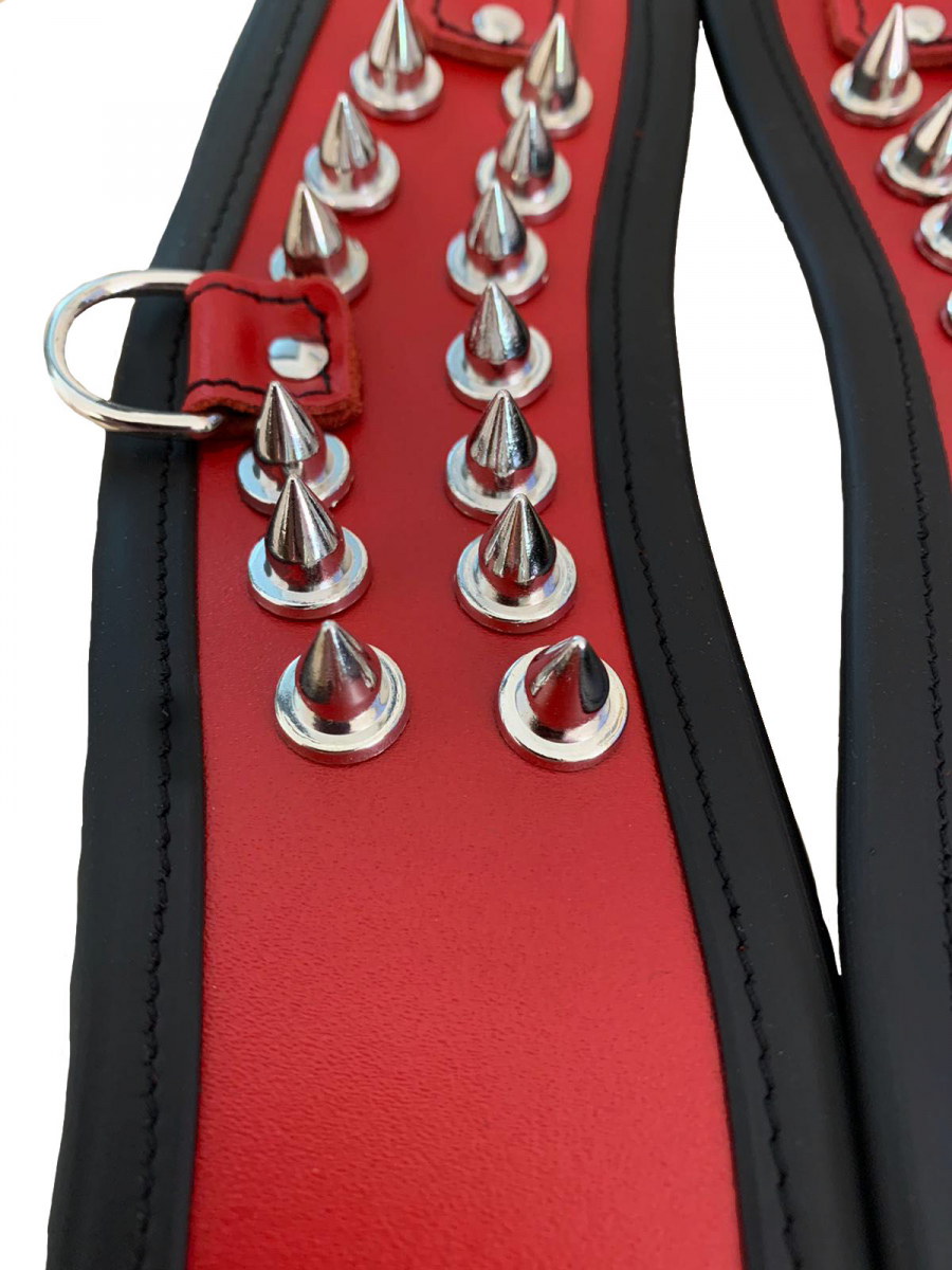 Set van 2 lederen handboeien met D-ring en spikes, verstelbaar.