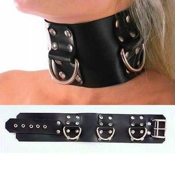 Stevige verstelbare halsband met D-ringen en studs versierd.