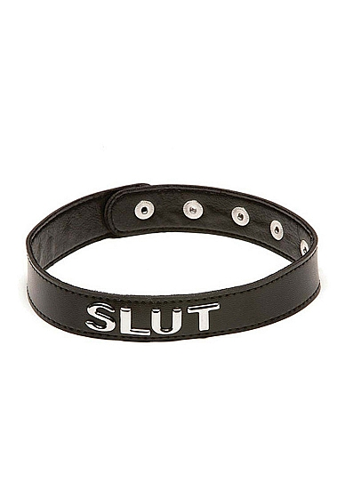 Verras uw onderdanige met deze hoge kwaliteit PVC halsband. Deze comfortabele PVC halsband is verstelbaar, om een goede pasvorm te garanderen. De halsband maakt de uiteindelijke verklaring, met het woord SLUT op de voorkant in verhoogde witte chrome letters. 5-voudige verstelbare drukknopsluiting achter.