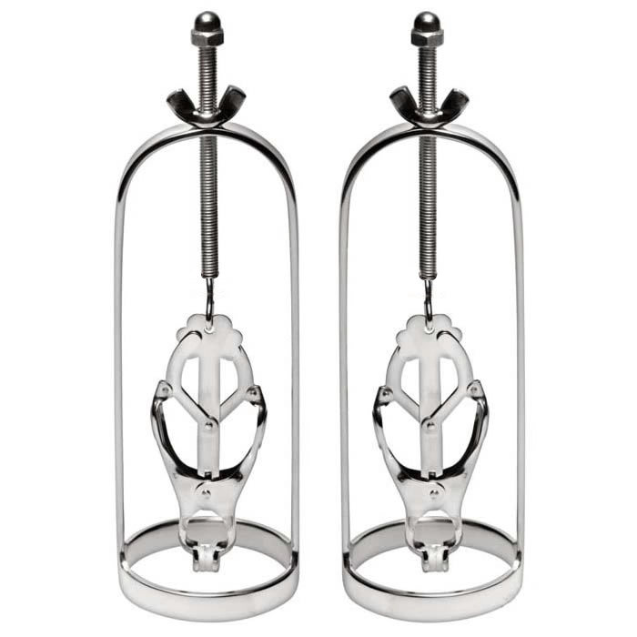 Het roestvrijstalen apparaat gaat op de borst te hoogte van de tepels. Hierna wordt de Amerikaanse tepelklem (model Ri-7675) op of over de tepel geplaatst en kunt U door de vleugelmoer aan te draaien, uw tepels, of die van Uw partner oprekken. Gebruik de gespannen tepels voor slinkse doeleinden, waaronder het toepassen van andere klemmen, wasknijpers, enz.