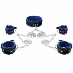 Saxos BDSM Toys Lederen Blauw-zwart Gevoerde 5cm Hals- Pols- En Voetboeienset Van Saxos