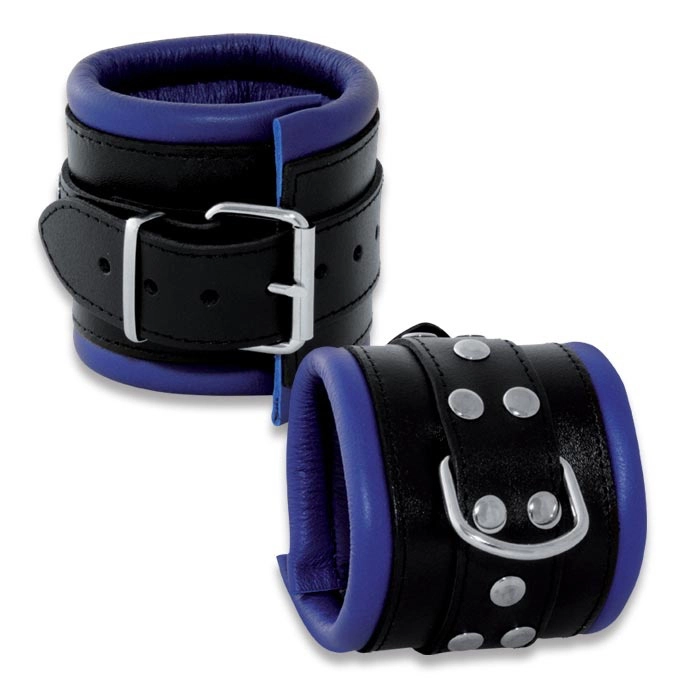 Lederen gepolsterde brede zwart-blauwe polsboeien van Saxos