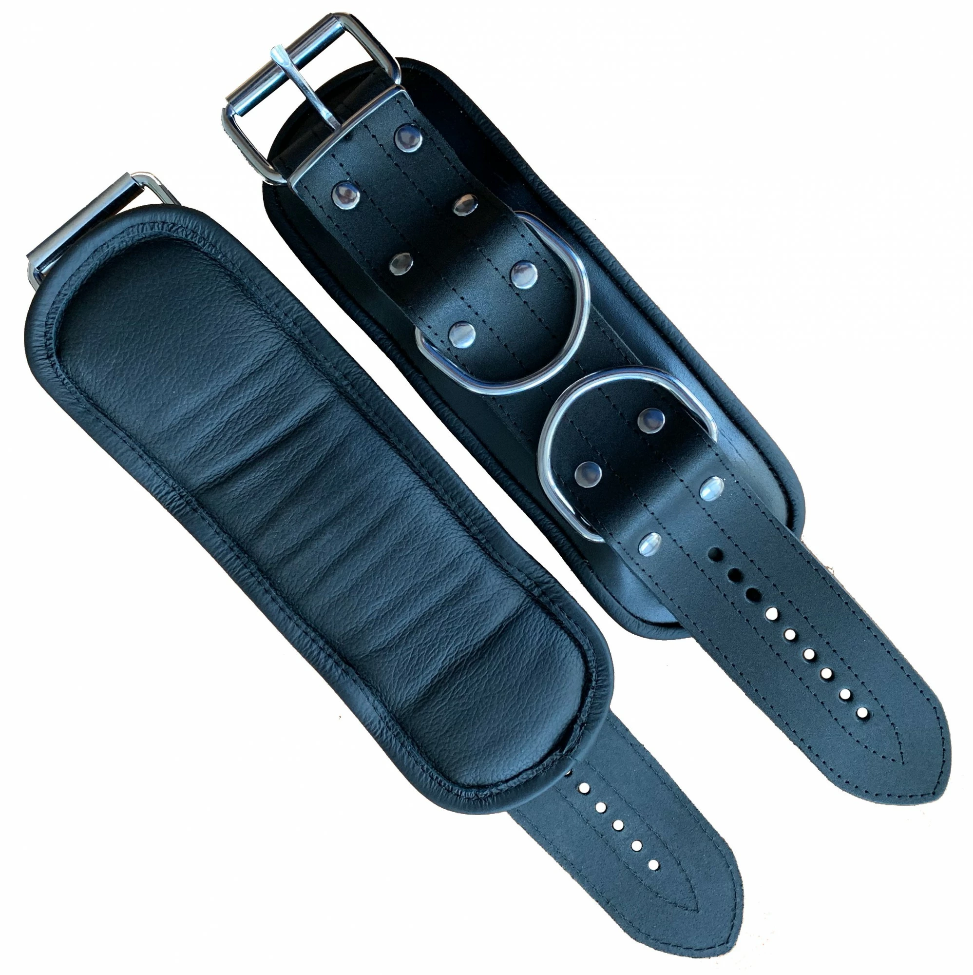 These wide-padded cuffs offer a comfortable fit for enjoyable bondage play