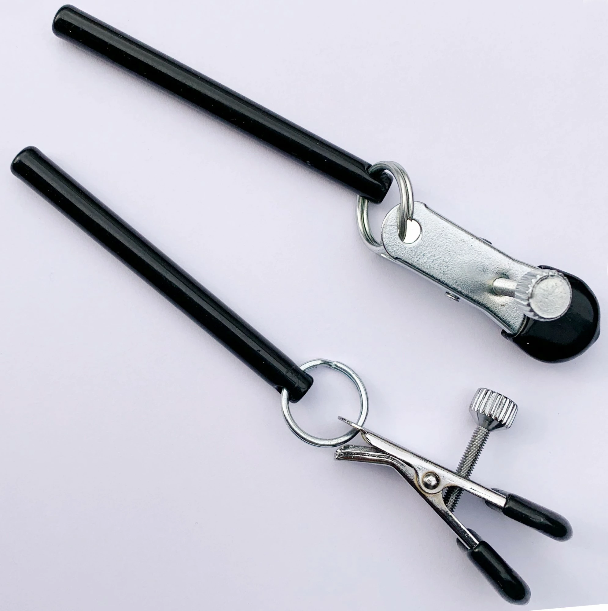 Deze stijlvolle zwart / zilver borst gewichtjes zien er geil uit en zorgen voor een spannend en tintelend draaggevoel. Met de rubbercoated zachte tepel clips blijven deze klemmen goed zitten. Bijvoorbeeld ook te plaatsen op de schaamlippen en de testikels.