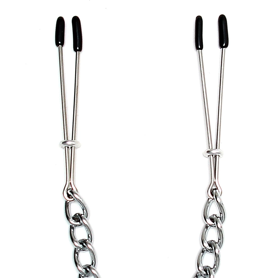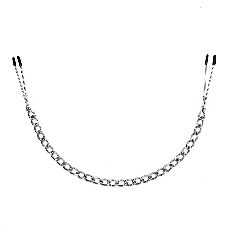 Verstelbare tepelklemmen met ketting. Schuif het ringetje van beneden naar boven om de druk te verhogen.