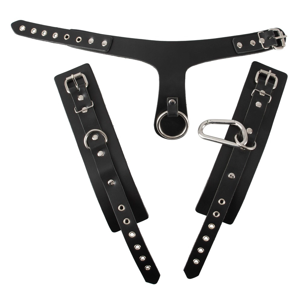 Authentieke bondage set geïnspireerd door “The story of O.”! Halsband met ring en twee niet gevoerde polsboeien aan een grote, simpele karabijnhaak. De polsboeien zijn verstelbaar.