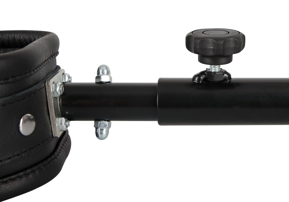 De boeien zijn 360 graden draaibaar en volledig gepolsterd kwaliteitsleder. (zelfde boei als de OS-0102-3S). De Spreidstang is voorzien van een hoogwaardige zwarte poedercoating. De Ø buis spreidstang is 30 mm