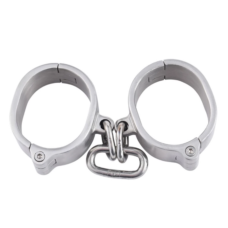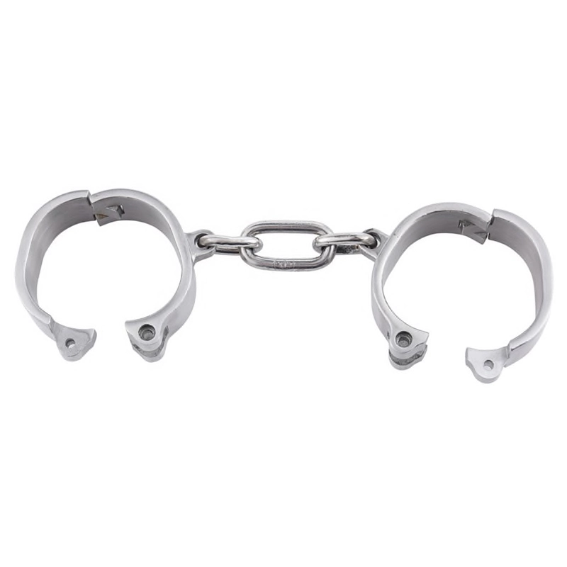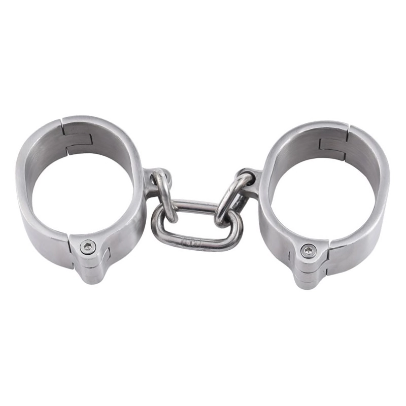 Prachtige Stalen polsboeien van geborsteld RVS in een medium maat (65 mm breed). Deze boeien zijn verbonden met slechts drie schakels om beweging te beperken zonder comfort op te geven. Eventueel kunnen wij de middelste schakel eruit halen zodat u deze gewoon kunt dragen maar ook middels een karabijn of hangslot kunt verbinden. Deze polsboeien zijn af te sluiten met de meegeleverde bouten en inbus sleutel.