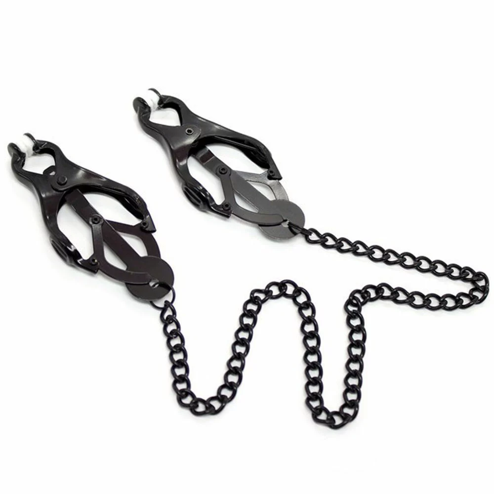 Zwarte Japanese tepelklemmen met ketting by Master Series